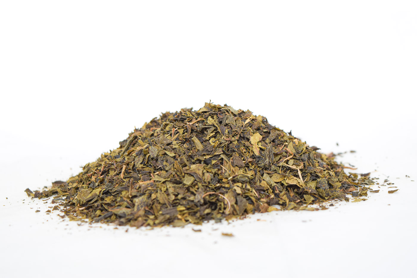 Hojas de té verde enteras, ideales para infusiones suaves.